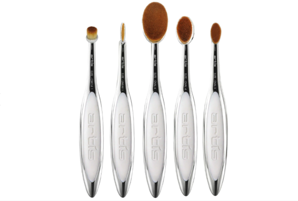 The elite 5 brush set includes these best selling artis brushes to create a full face of makeup. Oval 7 foundation blush contour oval 6 foundation blush bronzer oval 4 eye makeup concealer linear 1 eye liner brows circle 1r lip color eye shadow spot concealer the elite collection handles use paired el. And when your brushes look this. Oval 4 eye makeup concealer.